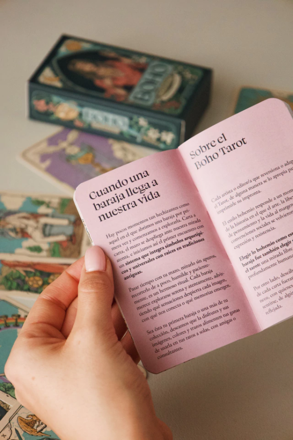 Boho Tarot es una relectura contemporánea del tarot clásico, inspirada en el mazo Rider creado por Pamela Colman Smith. Con estética bohemia y una profunda sensibilidad venusina, este mazo fusiona símbolos antiguos con una narrativa visual moderna, cálida e intuitiva.