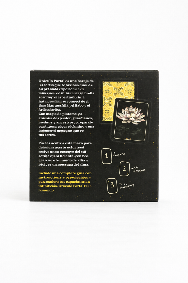 Este Oráculo es la representación de 3 mundos: el Aquí y Ahora, el Más Allá y el Inframundo. Las cartas poseen colores y tonos característicos y propios de cada plano. En el Aquí y Ahora prevalecen los colores tierra, los rosas y tonos cálidos. En el Más Allá prevalecen los colores asociados a lo espiritual y lo sutil: celestes, dorados, blanco. Y en el Inframundo, el negro.